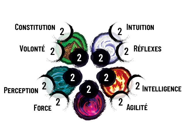 A la création, tout vos TRAITS sont à 2 et donc les Anneaux aussi.